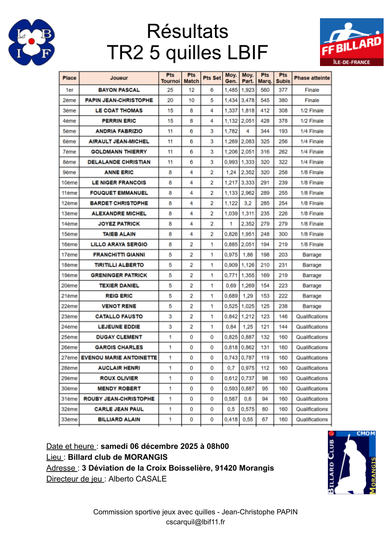 Le deuxième tournoi LBIF de 5 Quilles de la saison s’est déroulé ce samedi dans une ambiance conviviale et sportive.