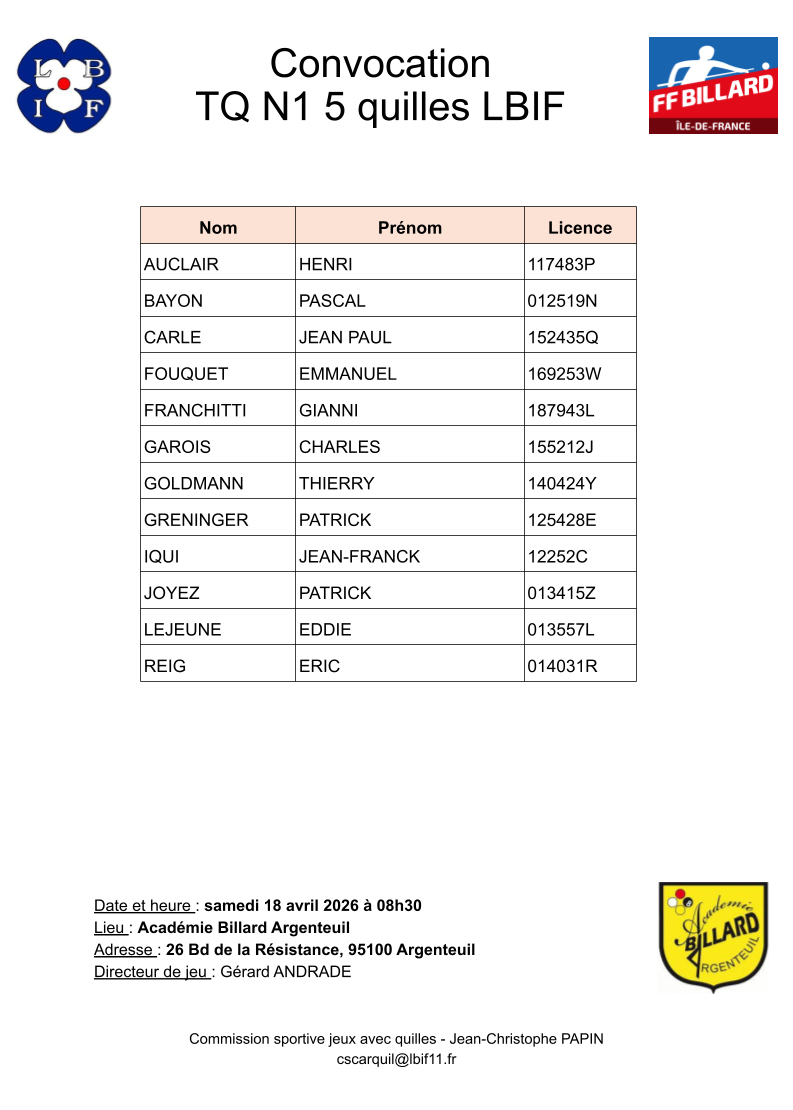 Vous pouvez retrouver la convocation via ce lien : Page lbif11.fr – Convocations