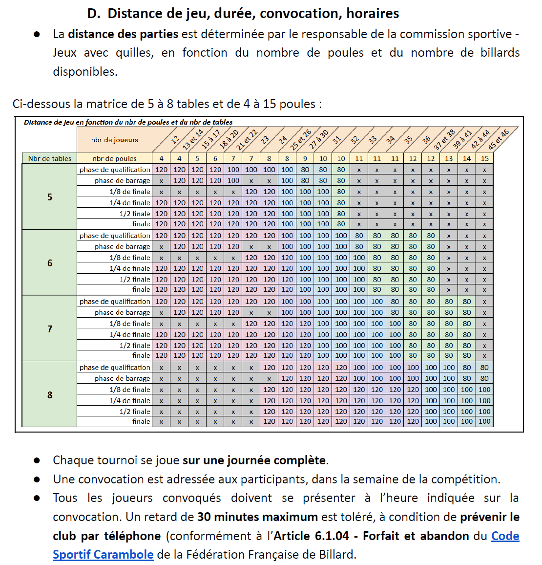 Je viens de procéder à une mise à jour du tableau des distances de jeu en paragraphe 1.1.1.D du Code Sportif.